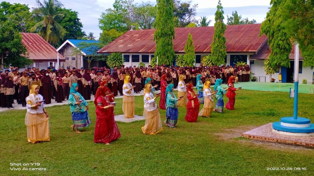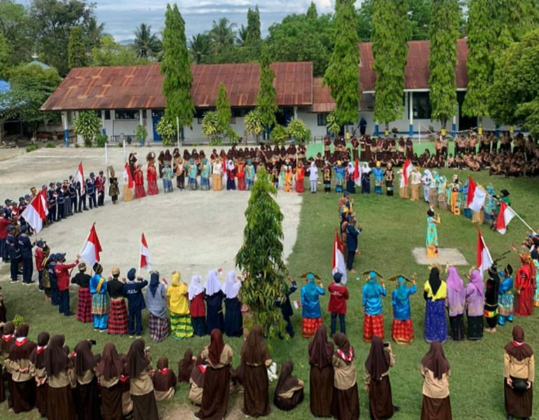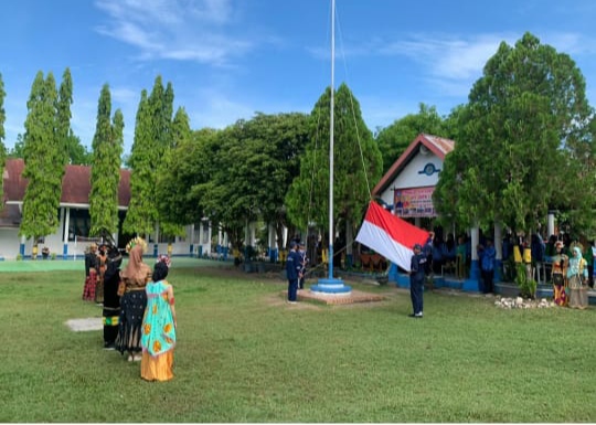 Dalam sambutan itu pula Sa’ade yang tidak lama lagi akan memasuki purna tugas menyampaikan apresiasi yang sangat tinggi kepada para siswanya khususnya petugas upacara yang berkostum adat.
