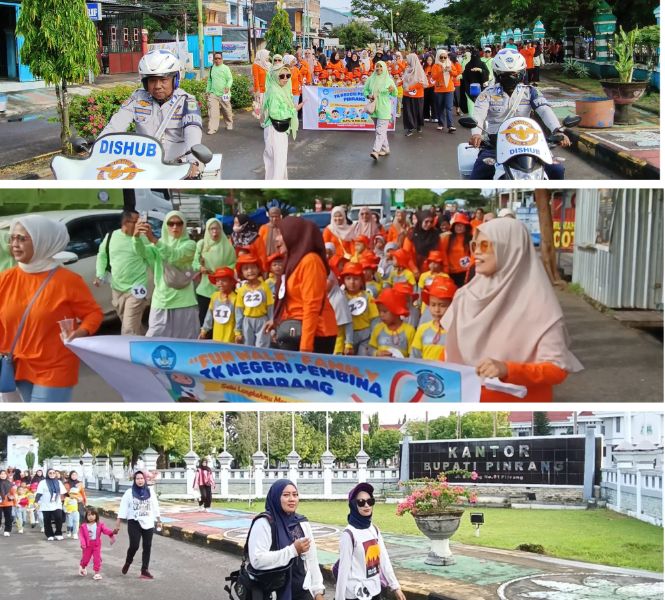 Kemudian pelepasan Jalan Santai ini, diawali dengan pengguntingan pita oleh Andi Deliana, SE, di dampingi Kasmiati Syafar, S.Pd. Kepala TK Negeri Pembina Pinrang, dan disambut meriah dan penuh semangat para orang Tua bersama anaknya dengan jumlah anak didik 150 orang, Start dihalaman Masjid Al Munawir dengan rute menuju Jalan Jend Sudirman, melintasi Kantor Cabang BRI ke Utara melintasi M Hotel belok kiri ke Jalan Jend Sukowati, kemudian melintas depan Kantor Dikbud Pinrang menuju Jalan Juanda lalu memutar ke Jalan Bintang atau Jalur Dua dan kembali Finis di halaman Masjid Al Munawir.