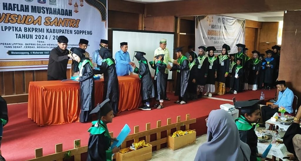 Ketua DPD BKPRMI Soppeng, Dr. Syamsuddin, SS, M.Si, menyampaikan bahwa kegiatan wisuda santri ini sejalan dengan visi dan misi Pemerintah Kabupaten Soppeng dalam membangun masyarakat yang religius dan berprestasi.
