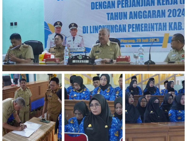 Pinrang, SUARAGURUSULSEL.COM – Bupati Pinrang H. A. Irwan Hamid, S.Sos berkesempatan menyaksikan langsung penandatanganan nota perjanjian kerja dan menyerahkan secara simbolis Surat Keputusan (SK) Pengangkatan kepada 301 orang Tenaga Pegawai Pemerintah dengan Perjanjian Kerja (PPPK) lingkup Pemerintah Kabupaten Pinrang, bertempat di Ruang Pola Kantor Bupati Pinrang. Selasa, (29/7/2025).