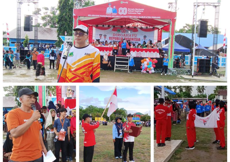 Pinrang, SUARAGURUSULSEL.COM – Bertempat di Lapangan Bulu, Kelurahan Manarang, Pemerintah Kecamatan Mattiro Bulu menggelar pembukaan Pekan Olahraga dan Seni (Porseni) dalam rangka menyemarakkan Hari Ulang Tahun Kemerdekaan Republik Indonesia ke – 80 tahun 2025. Ahad 10 Agustus 2025 siang.