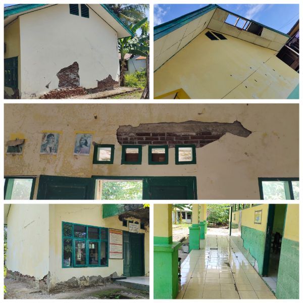 “Kondisi ruang perpustakaan memang sudah tidak ditempati membaca karena banyak retakan, dan ada ruang kelas yang atapnya sudah terbuka sehingga sangat mengganggu pembelajaran,” ujarnya.